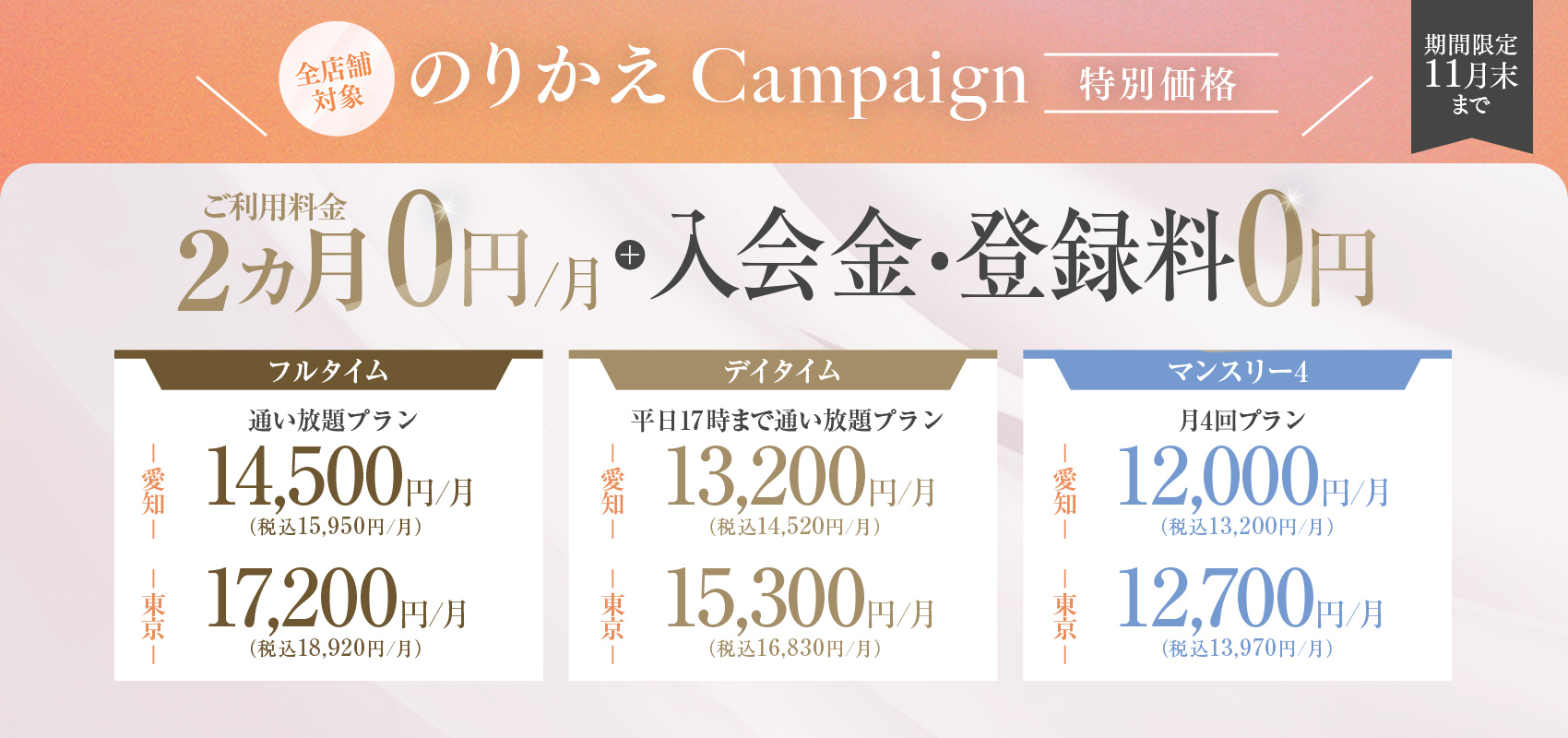 手ぶらトライアルレッスン、のりかえCampaignに関しては以下内容をご確認ください。